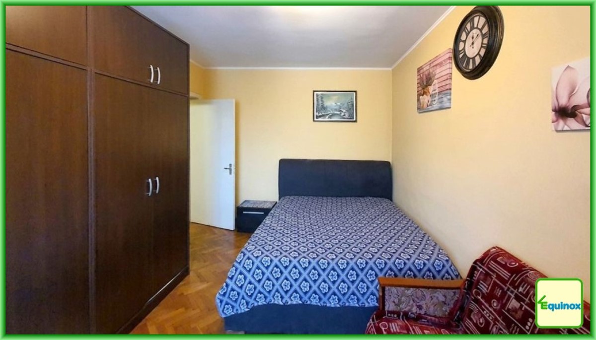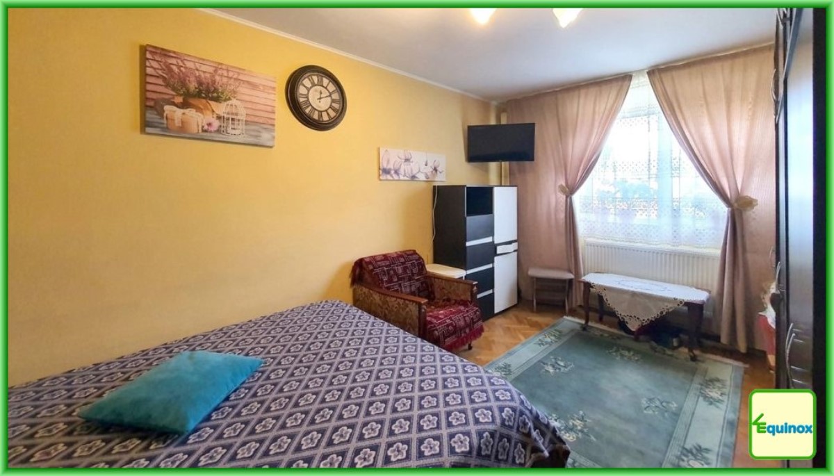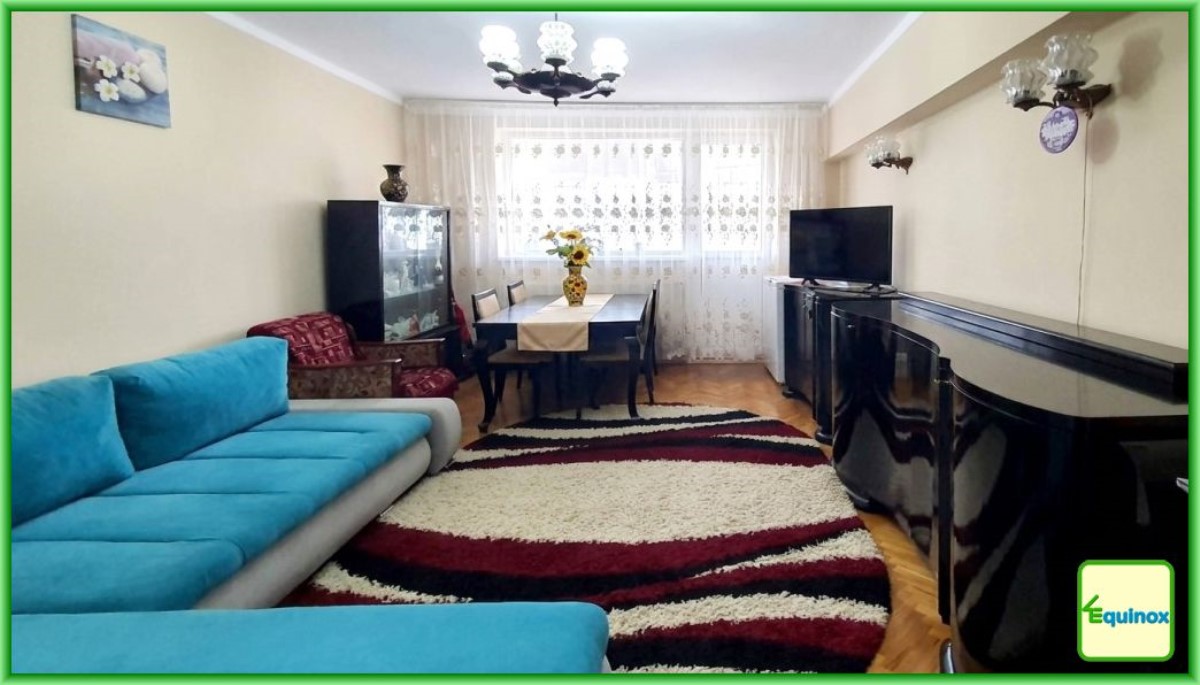 Structura de rezistenta: beton Stare imobil: renovat cu finisaje medii; stare buna Pardoseli: parchet, gresie Pereti: faianta, zugravit lavabil Tamplarie interioara: usi celulare Tamplarie exterioara: ferestre din PVC cu geam termopan Balcoane: inchise cu PVC si geam termopan Usa intrare: metalica Incalzire: centrala termica proprie pe gaze si calorifere Climatizare: aer conditionat Mobilier si dotari: apartamentul se vinde complet mobilat si utilat (v. foto) Alte informatii: apartamentul este utilizat ca unul cu 3 camere (fosta sufragerie este utilizata ca dormitor, iar bucataria, impreuna cu holul si debaralele, ca spatiu de zi); nu sunt probleme cu plafonul Starea juridica: imobil intabulat, liber de sarcini